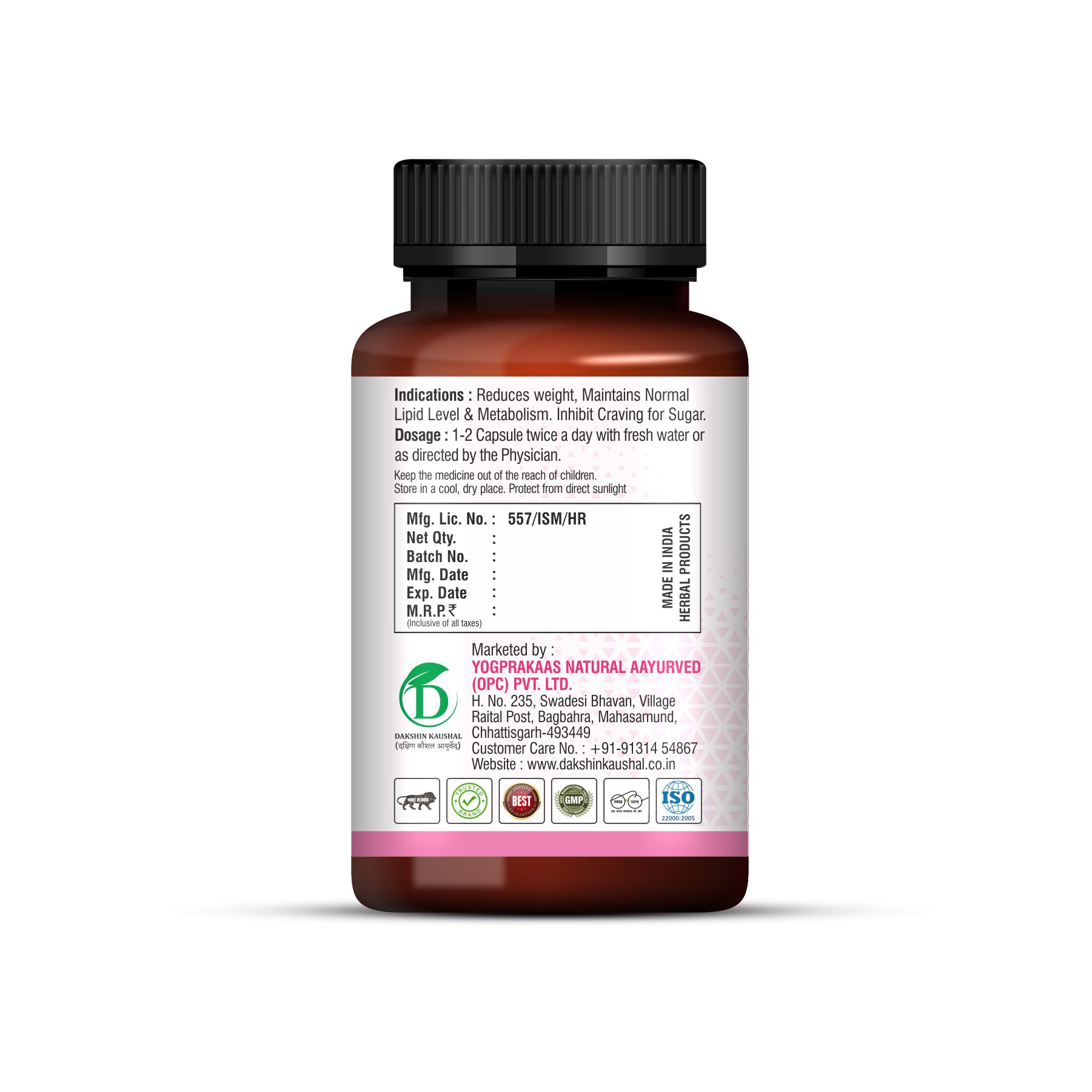 Produced with attention to ingredient quality and manufacturing standards, DAKSHIN-KAUSHAL Biotrim Capsules provide a practical herbal option for those prioritizing lifestyle balance, digestive comfort, and everyday wellness support.