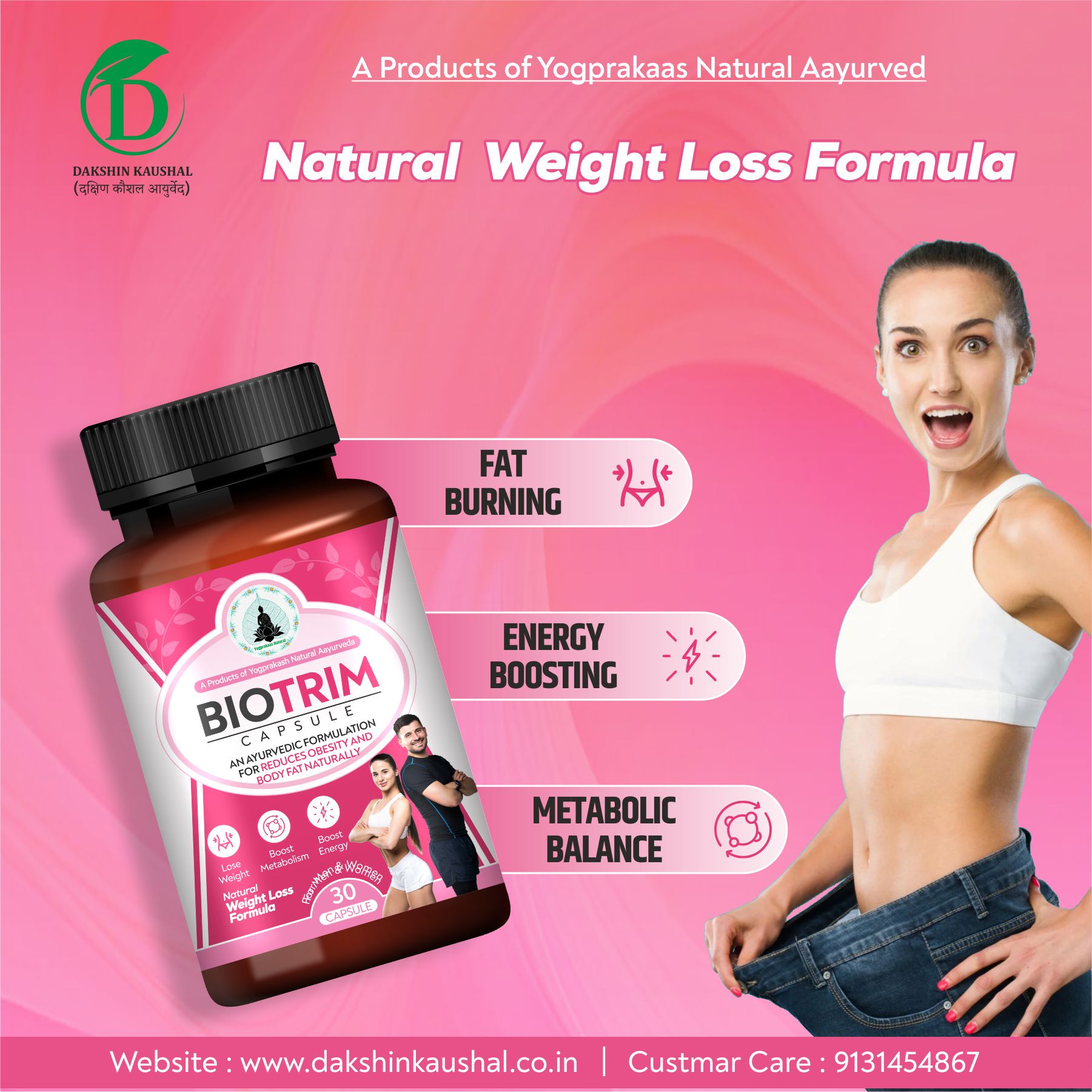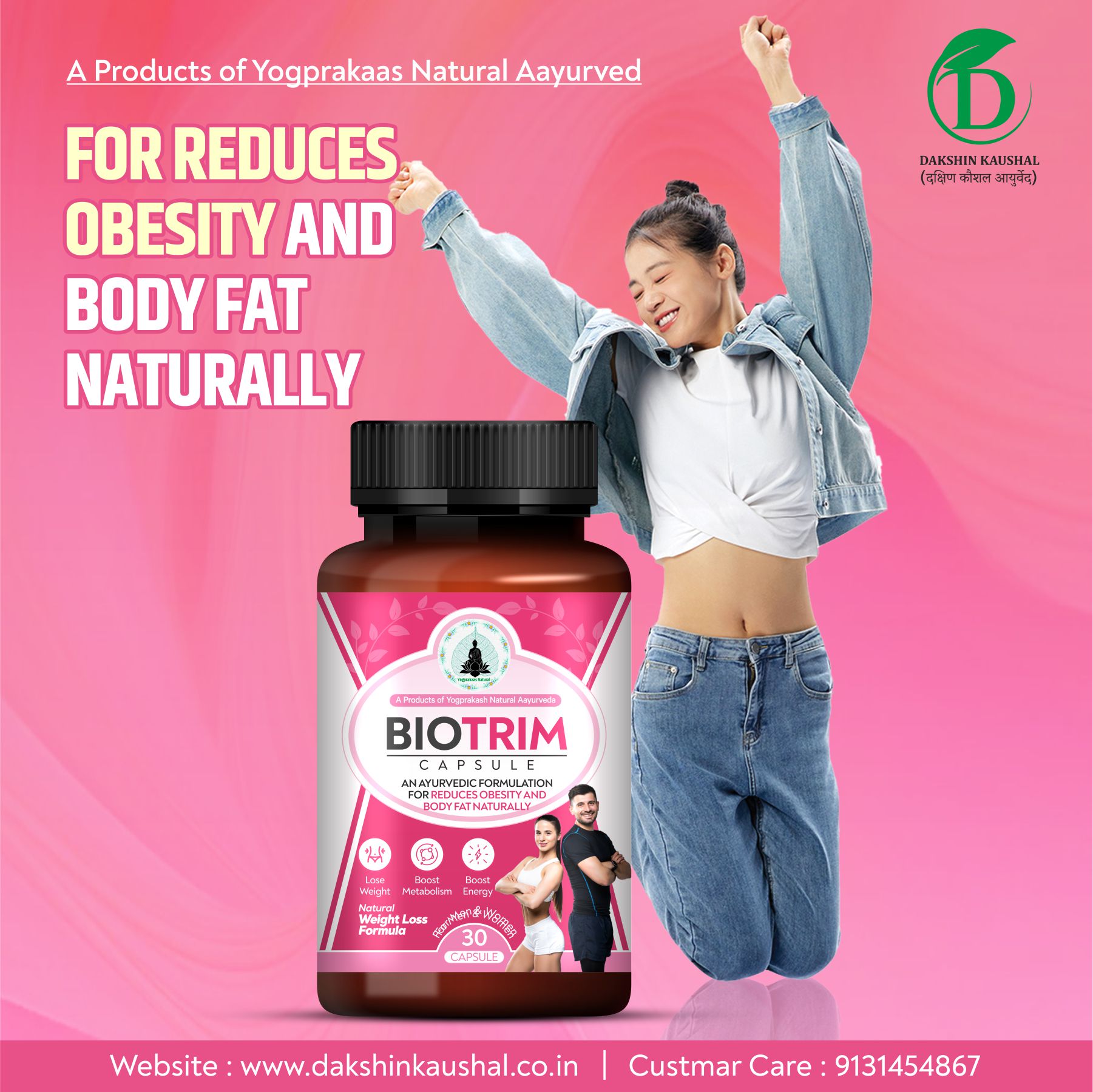 DAKSHIN-KAUSHAL Biotrim Capsules are an Ayurvedic herbal supplement thoughtfully formulated to support metabolism, digestive balance, and overall wellness as part of a healthy lifestyle. The blend includes traditional herbal ingredients such as Garcinia, Guggul, Green Tea, Amla, and other botanicals commonly used in Ayurveda for maintaining internal balance and vitality.