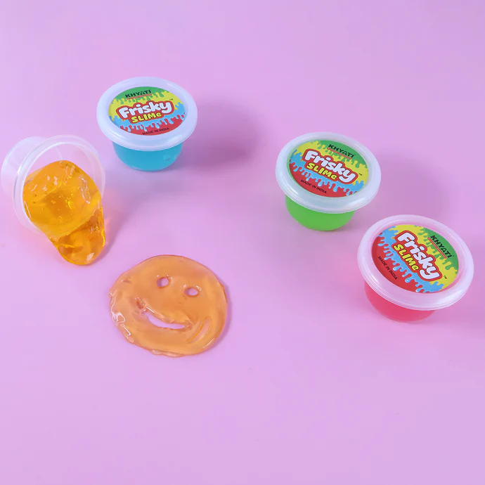Turn playtime into a fun-filled slime adventure with the Khyati Frisky Slime Blow with Straw Set! This exciting activity kit includes 4 tubs of colorful slime and paper straws for kids to blow stretchy slime bubbles, pull, and shape for endless fun. Safe, soft, and super entertaining, this set sparks creativity while providing a sensory-rich play experience. Perfect for parties, return gifts, or everyday entertainment, Frisky Slime keeps children engaged and delighted.