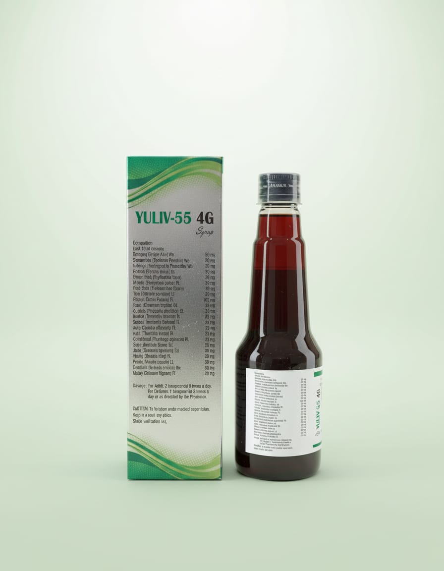 DAKSHIN-KAUSHAL YULIV-55 4G Herbal Syrup is an Ayurvedic-inspired wellness formulation created to support digestive comfort, liver wellness, and overall balance as part of a healthy lifestyle. It combines traditional herbal ingredients commonly used in Ayurvedic practices for maintaining digestive harmony and general wellbeing.